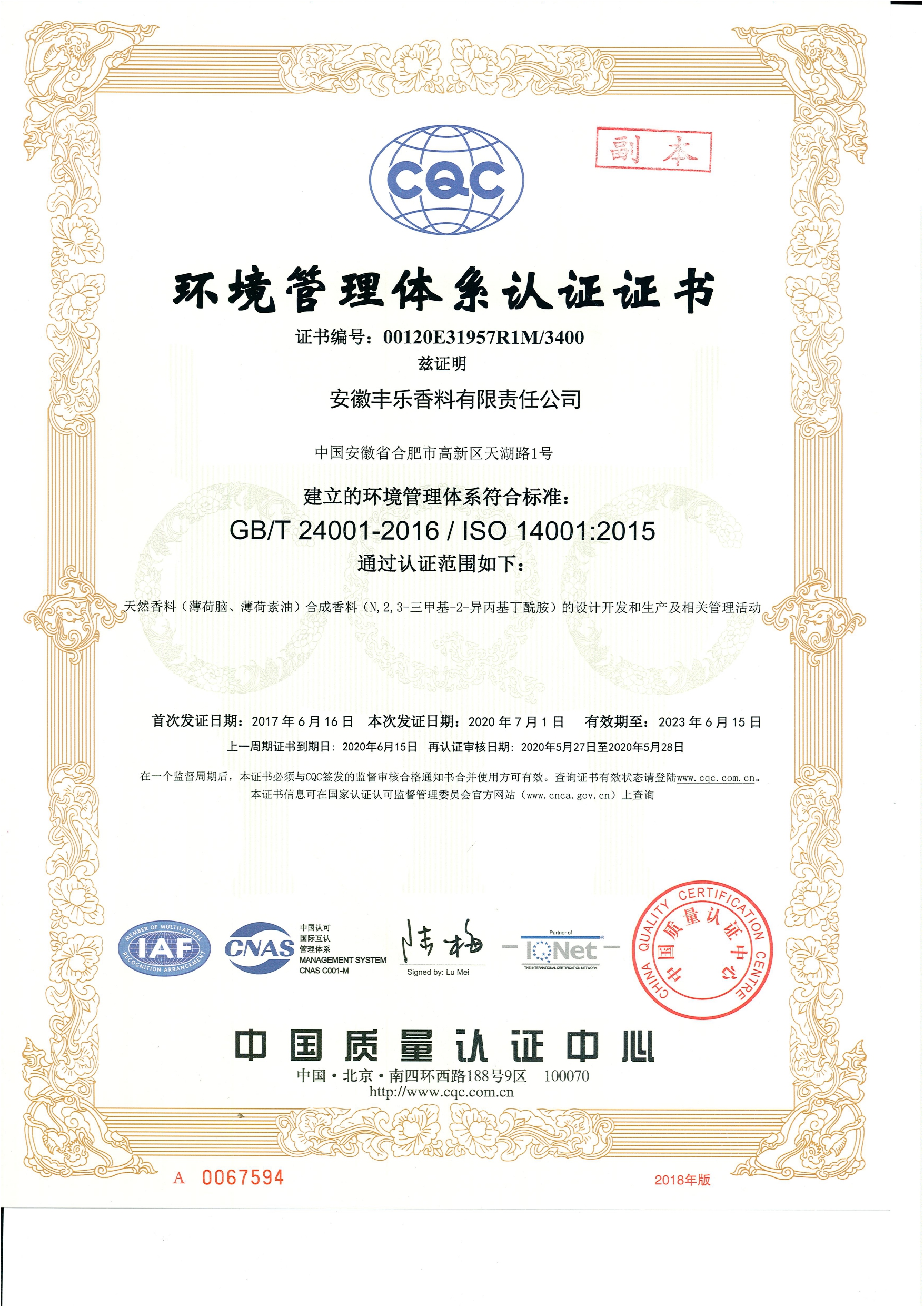 14001證書(shū)